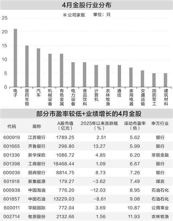 从估值水平来看,截至4月2日,42只业绩增长的4月金股滚动市盈率低于20倍,其中8股市盈率在10倍以下,分别是江苏银行、齐鲁银行、新华保险、工商银行、招商银行、新集能源、中国海油、中国石油。