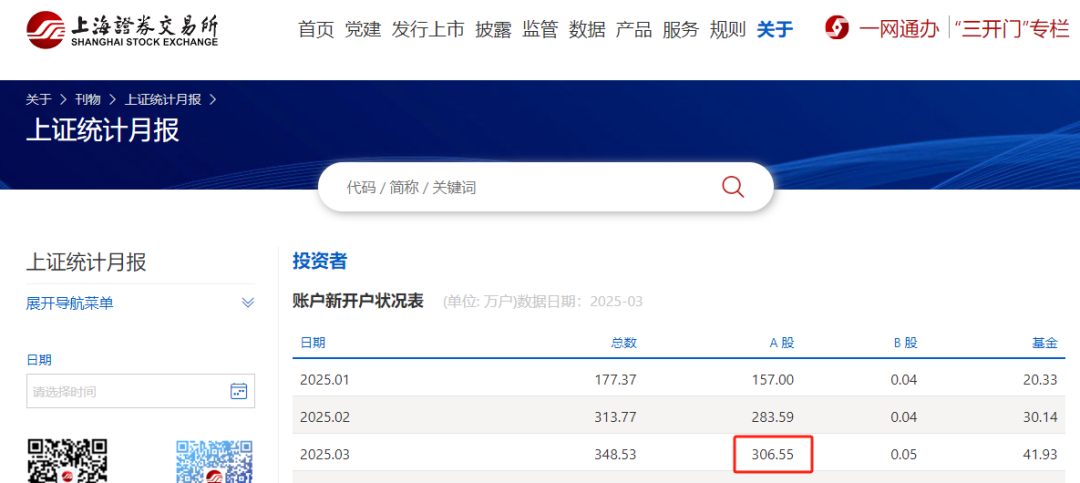 据上交所网站披露,今年3月A股新开户306.55万户,较今年2月环比继续增长,也是时隔4个月重返300万户以上。