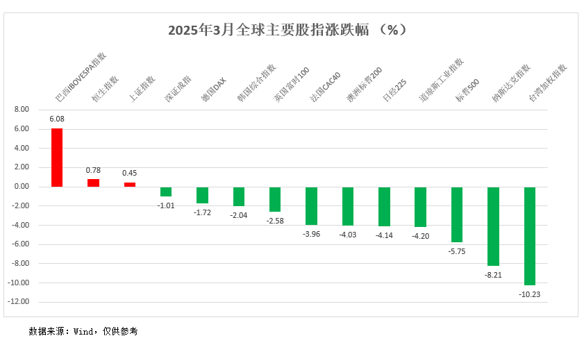 值得注意的是,刚刚过去的2025年3月,全球股市总体表现不佳,多数国家或地区的股市出现下跌。