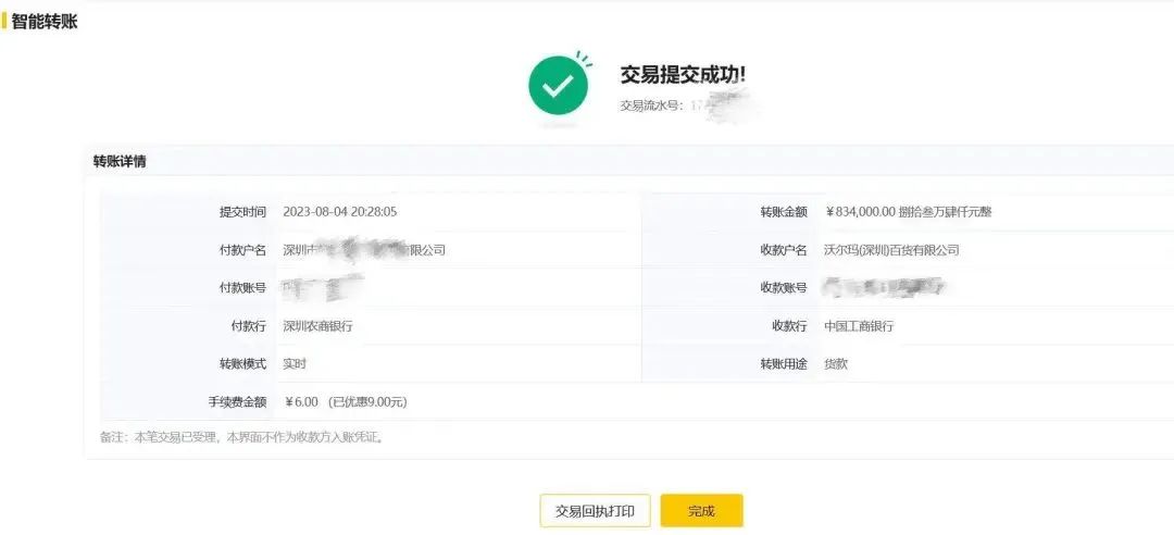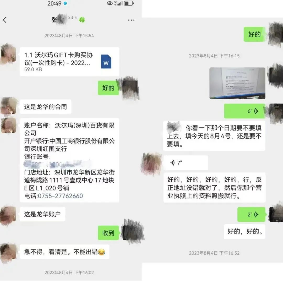 杨先生表示,他在转账前后并未收到山姆方面关于张某离职的任何通知,且张某在整个交易过程中一直使用山姆的官方渠道和账号进行沟通,收款账户也是沃尔玛(深圳)百货有限公司,这让他有充分理由相信张某仍代表山姆进行业务操作。