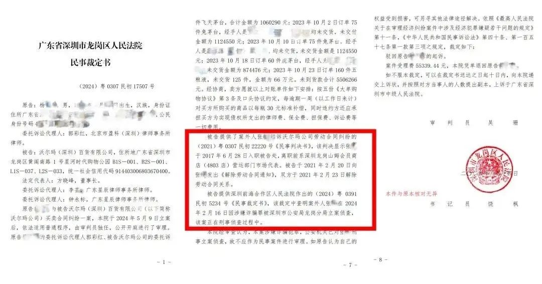 随后,杨先生便向广东省深圳市龙岗区人民法院起诉了沃尔玛(深圳)百货有限公司,要求解除双方的《大单购物协议》,并返还货款5506266元,同时支付资金占用费、赔偿金等各项费用。