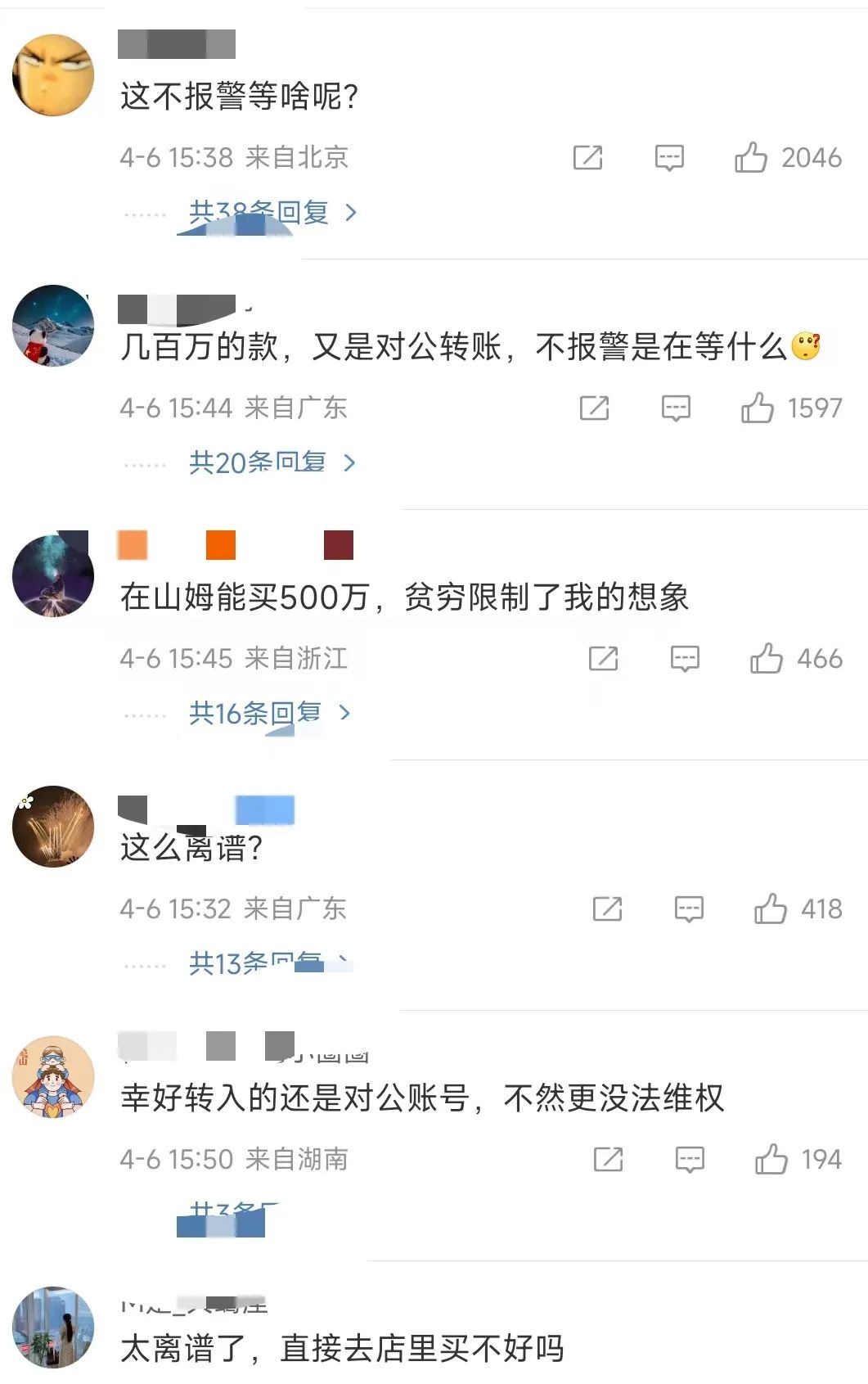 4月6日,话题#男子在山姆采购550万元商品遭冒领#冲上热搜第一。有网友表示,“太离谱了”。