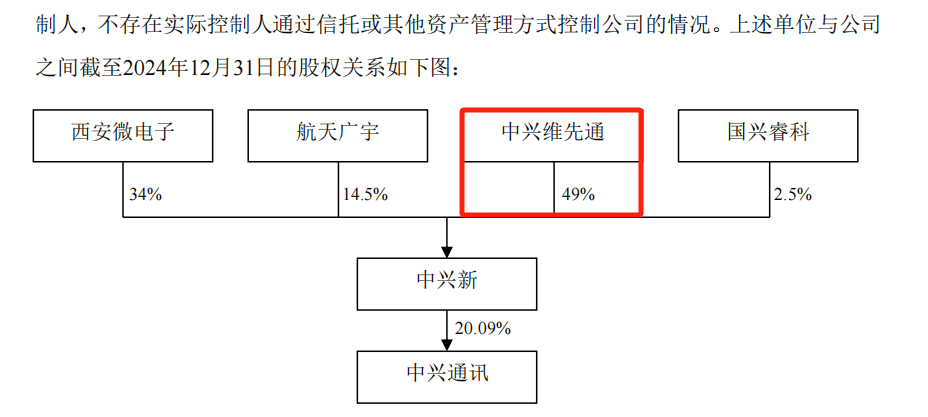 深圳市中兴维先通设备有限公司持有中兴新通讯有限公司(以下简称中兴新)49%的股权,而中兴新是中兴通讯的控股股东,持有中兴通讯20.09%的股权。