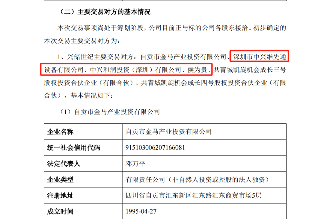 琏升科技初步确定的交易对方包含:自贡市金马产业投资有限公司、深圳市中兴维先通设备有限公司、中兴和润投资(深圳)有限公司、侯为贵、共青城凯旋机会成长三号股权投资合伙企业(有限合伙)、共青城凯旋机会成长四号股权投资合伙企业(有限合伙)。