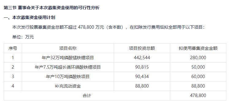 2025年12月,磷酸铁锂正极龙头公司湖南裕能(SZ301358)定增计划过会,公司拟将39亿元募集资金用于三大产能建设项目,包括年产32万吨磷酸锰铁锂项目、年产7.5万吨超长循环磷酸铁锂项目及年产10万吨磷酸铁项目。