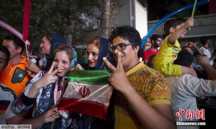资料图:当地时间2015年7月14日,伊朗德黑兰,伊朗民众在街头欢呼雀跃,庆祝伊核问题谈判达成全面协议。