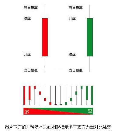 K线是一条柱状的线条,由影线和实体组成。中间的矩形称为实体,影线在实体上方的细线叫上影线,下方的部分叫下影线。实体分阳线和阴线。